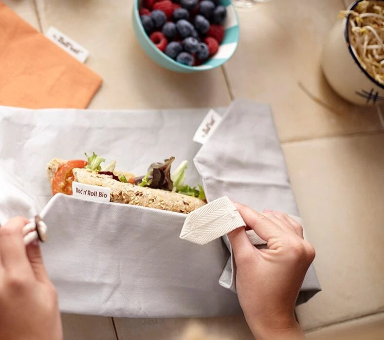 Het zakje laat zich gemakkelijk aanpassen aan verschillende afmetingen voedingsmiddelen. Na gebruik is de zak hygiënisch en compact op te bergen. Sluit de zak af met het katoenen tape en de kokosnootknoop. Gebruik het by Roll’eat Boc’n’Roll herbruikbaar boterhamzakje voor het meebrengen van een zelfgemaakte lunch of boterham.