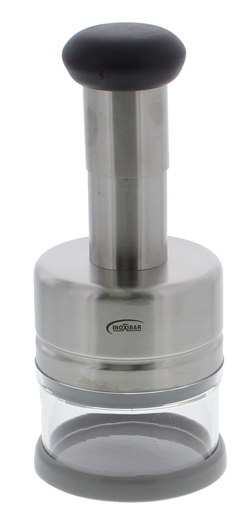 De Inoxibar uienhakker is vervaardigd uit roestvrij staal en kunststof. De hakker heeft een hoogte van 21 cm en een diameter van 9 cm. Dankzij de drie roterende messen – die in v-vorm geplaatst zijn – hakt u snel uien fijn..