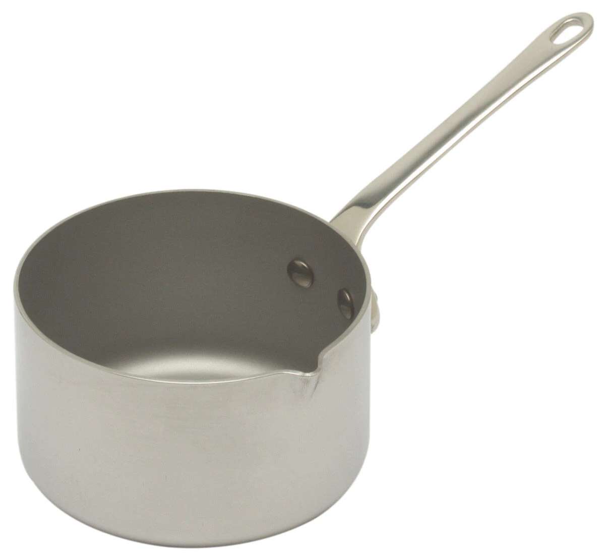 De roestvrijstalen Mauviel M’Minis steelpan met schenktuit is vaatwasmachinebestendig.