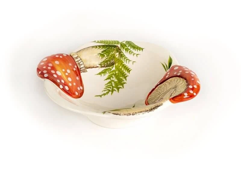 De diepe Oldenhof-schaal heeft een rood/wit paddenstoelmotief en een diameter van 29 cm. De schaal is 7 cm hoog en gemaakt van keramiek. U gebruikt het design voor het presenteren van fruit, (stok)brood of pasta.