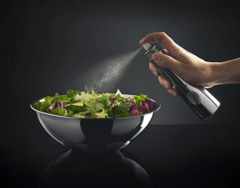 Met de roestvrij stalen Olipac dressing spray bewaart en serveert u uw kostbare olijfolie op zeer luxe wijze. De spray ziet er met zijn glanzende afwerking niet alleen prachtig uit, hij zorgt er tevens voor dat de olie langer zijn smaak en voedingsstoffen behoudt. De spray heeft een inhoud van 200 ml en is voorzien van een transparant kijkvenster. Zo heeft u direct zicht op de inhoud en de beschikbare hoeveelheid. De spray is vervaardigd van 100% recyclebaar roestvrij staal is bestand tegen vallen en schokken. Gebruik de Olipac Ariella dressing spray voor het doseren en serveren van (olijf)olie, dressing of andere vloeistof.