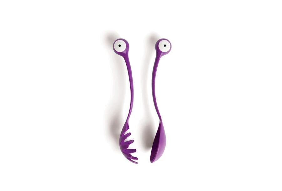 De Ototo Pasta Monsters pastalepels zijn gemaakt van paars kunststof. Het couvert is vormgegeven als de ogen van het spaghettimonster. Gebruik de pastalepels om pasta mee op te scheppen. De lepels zijn 29 cm lang en 8 cm breed.