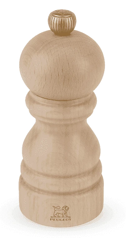 De Peugeot Paris naturel pepermolen heeft het klassieke Peugeot model, is uitgevoerd in blank beukenhout en heeft een hoogte van 12 cm. Het maalwerk in de molen is vervaardigd uit roestvrij staal. Op de metalen draaiknop bovenop bevindt zich de het logo van Peugeot.