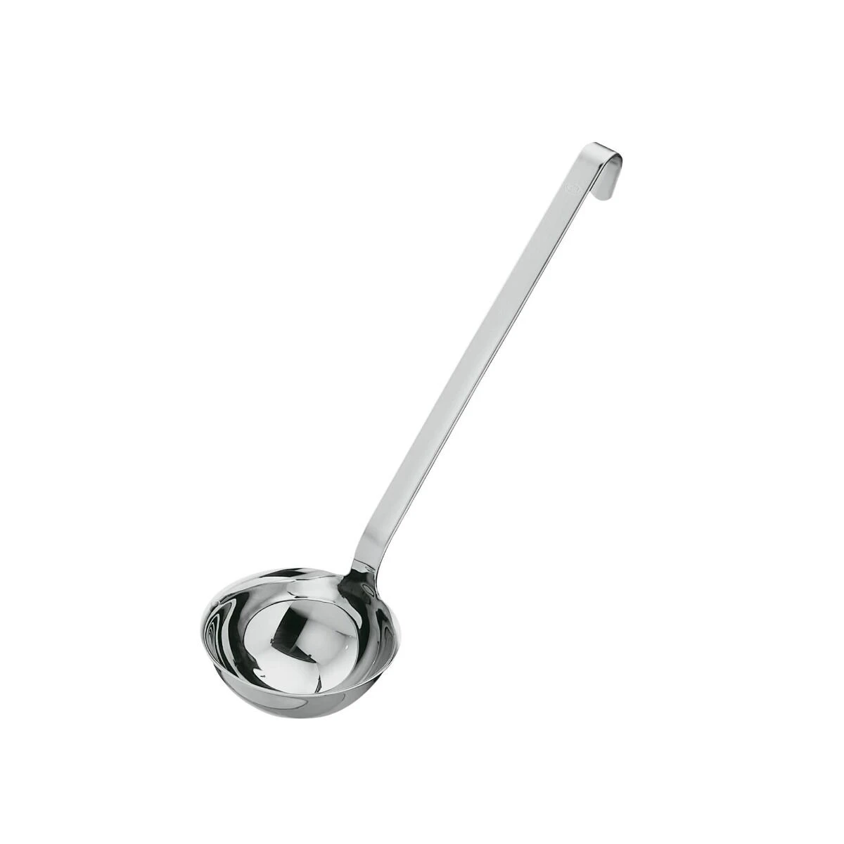 De Rösle sauslepel met schenkrand is 25,5 cm lang en is vervaardigd uit roestvrijstaal. De lepel heeft een diameter van 6 cm met een inhoud van 40 ml. Gebruik de lepel voor het opscheppen van saus of andere etenswaren.