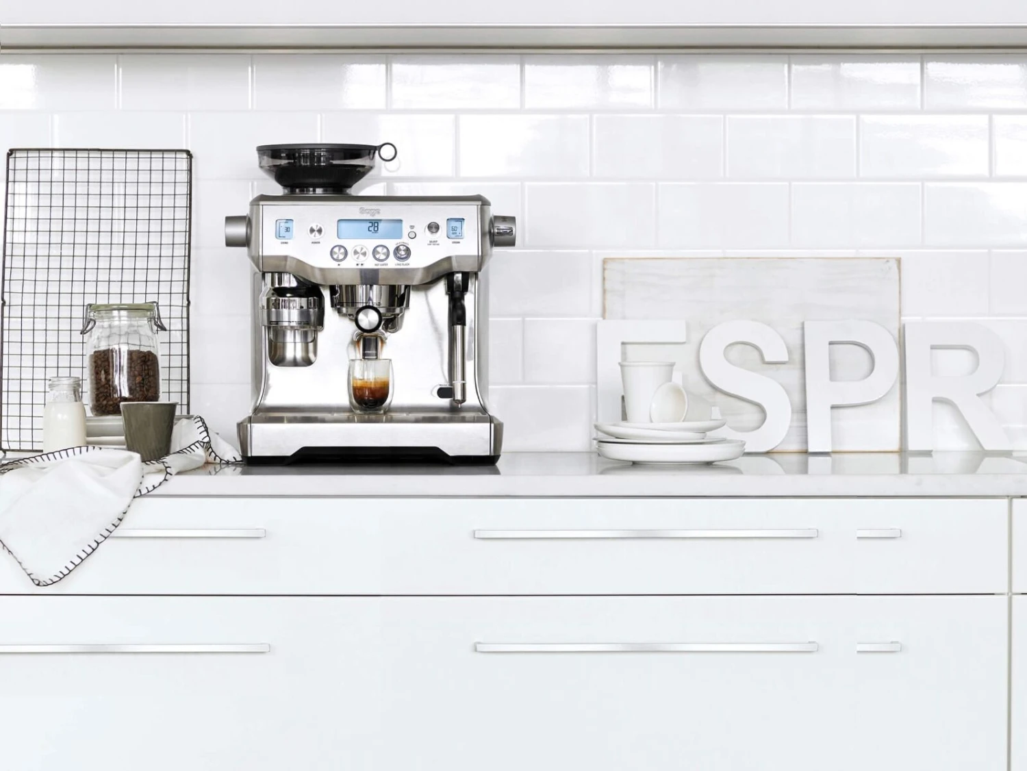 De Sage The Oracle espressomachine is een volautomatische espressomachine, voorzien van een ingebouwde bonenmaler met conisch maalwerk.