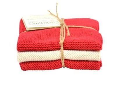 De Solwang Design vaatdoeken zijn vervaardigd uit 100% eco-tex katoen. De set van 3 vaatdoeken komen in 3 verschillende tinten rood. De doeken zijn 25 cm lang, 25 cm breed en hebben door de breitechniek uitstekende vocht opnemende eigenschappen.