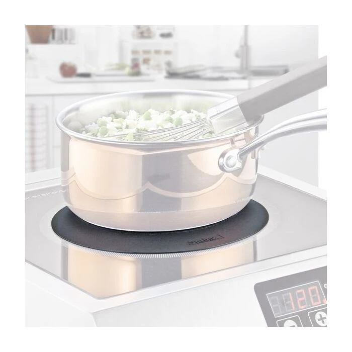 Deze inductiebeschermermat dekt uw inductieplaat veilig af en beschermt tegen vuil, vochtigheid en krassen. De mat is 1,1 mm dik, is gemaakt van slipvrij silicone en komt in een neutrale, zwarte kleur. De inductiebeschermer heeft een diameter van 22 cm.