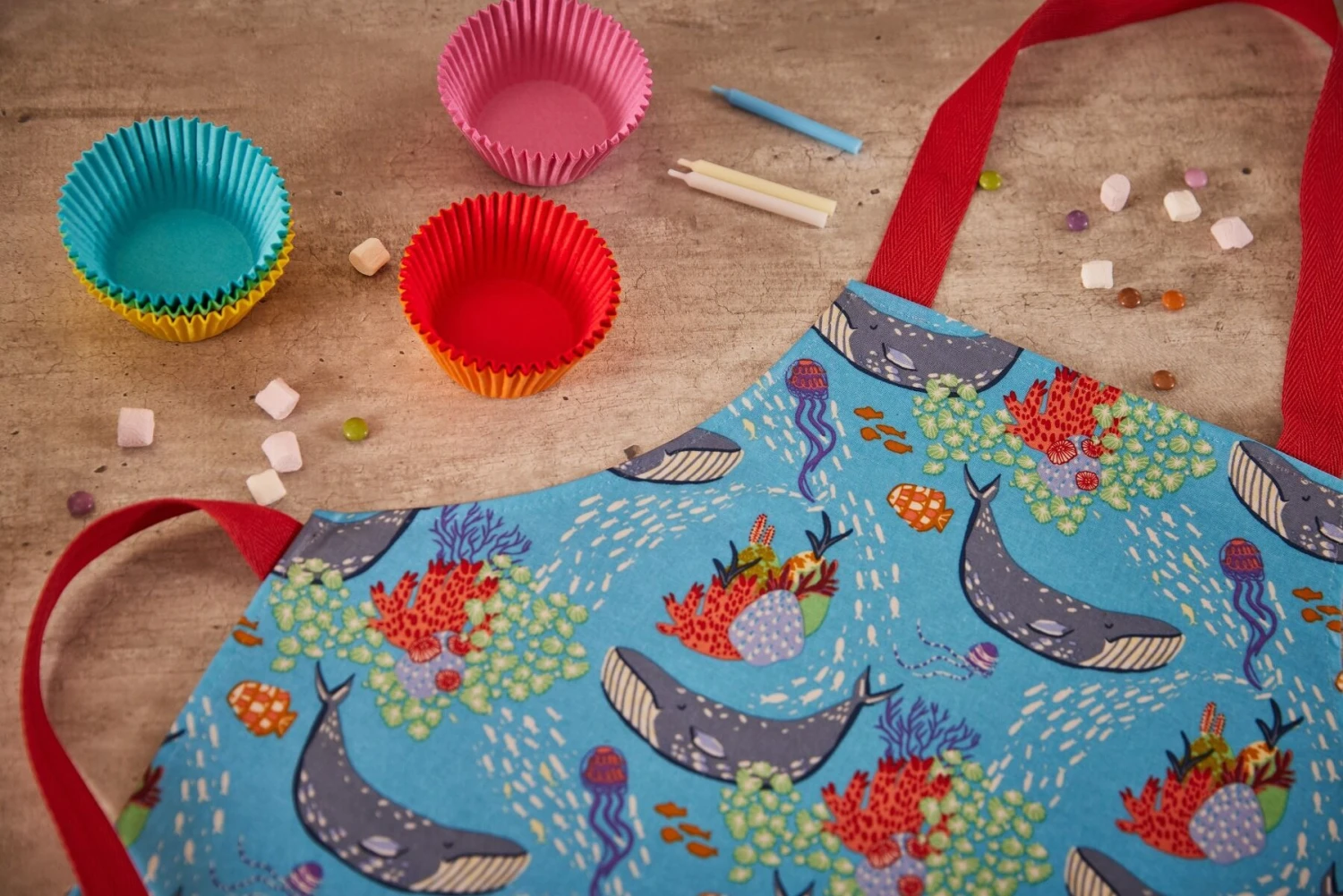 Het Ulster Weavers kinderschort met Underwater Wonders opdruk is gemaakt van pvc. Gebruik het schort om de kleding tegen spetters en vlekken te beschermen. Het schort is voorzien van een vrolijk motief. Het schort is 55 cm lang en 45 cm breed.