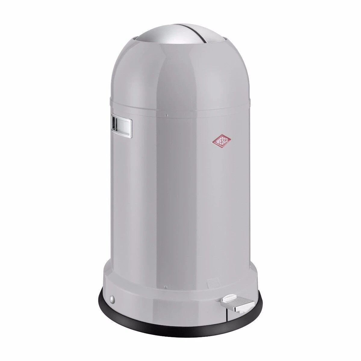 De Wesco Kickmaster Classic Line afvalemmer met Cool Grey, grijze, plaatstalen behuizing heeft een inhoud van 33 liter. De hoogte van de emmer is 70 cm met een diameter van 41 cm. De Kickmaster heeft twee roestvrijstalen kleppen met een soft close systeem.